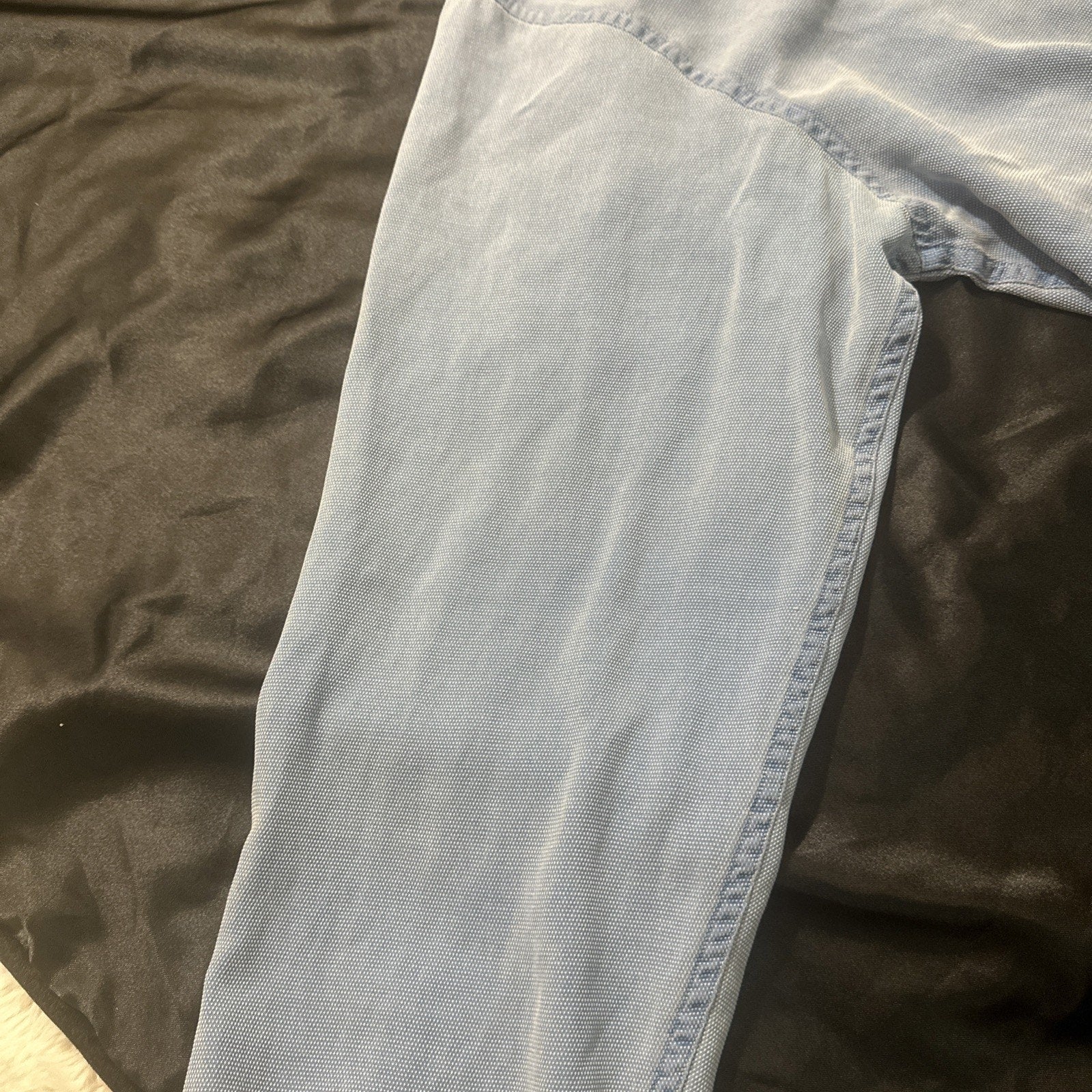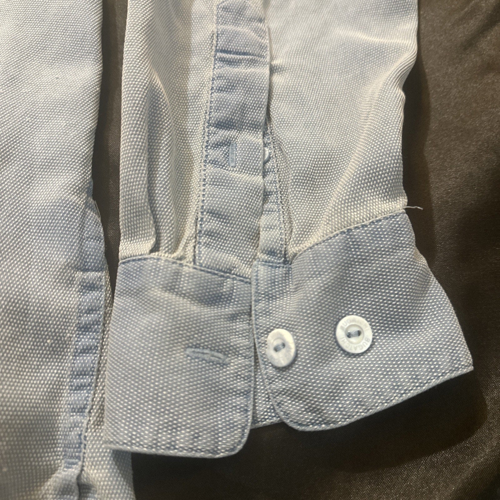 This Bugatchi Button Down Casual Long Sleeve Shirt in blue is a stylish and versatile addition to any man's wardrobe. Made from a luxurious blend of silk and cotton, this shirt offers a comfortable fit with a regular cut. The collared neckline and button closure add a touch of sophistication, making it suitable for both casual and semi-formal occasions. The solid blue color gives it a classic and timeless look, while the XL size ensures a comfortable and flattering fit for those with a 26" PTP measurement. Perfect for the modern man looking for both style and comfort in their wardrobe.