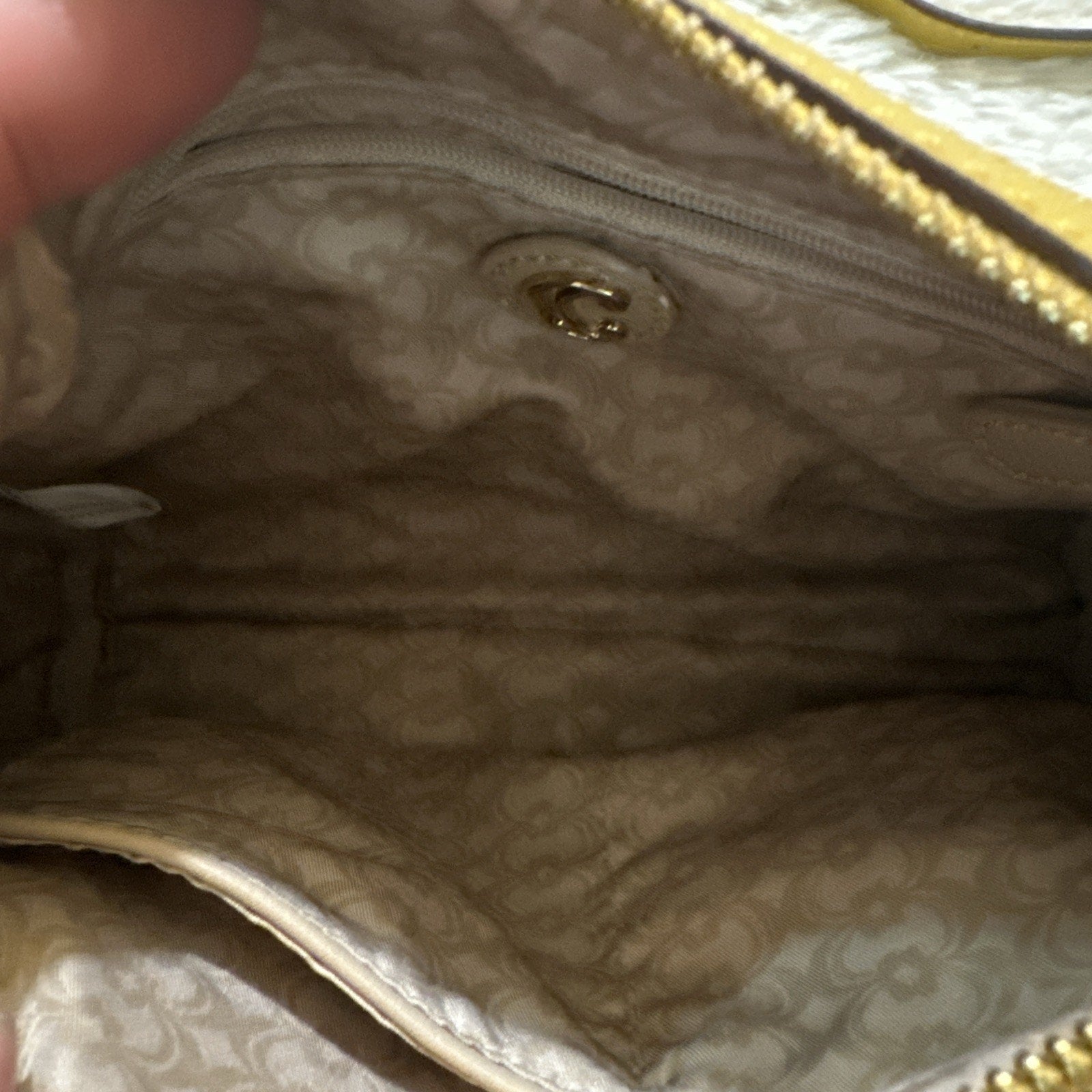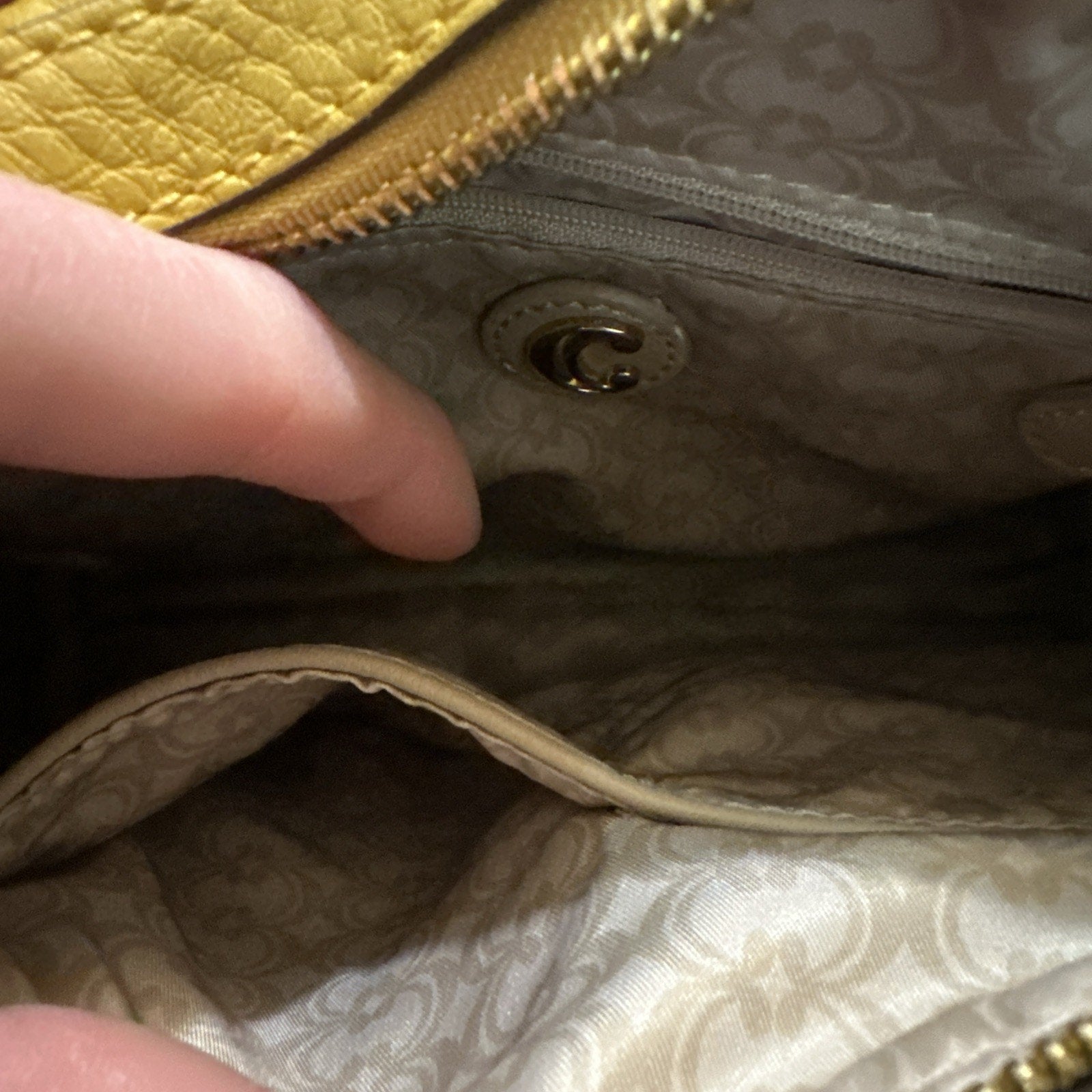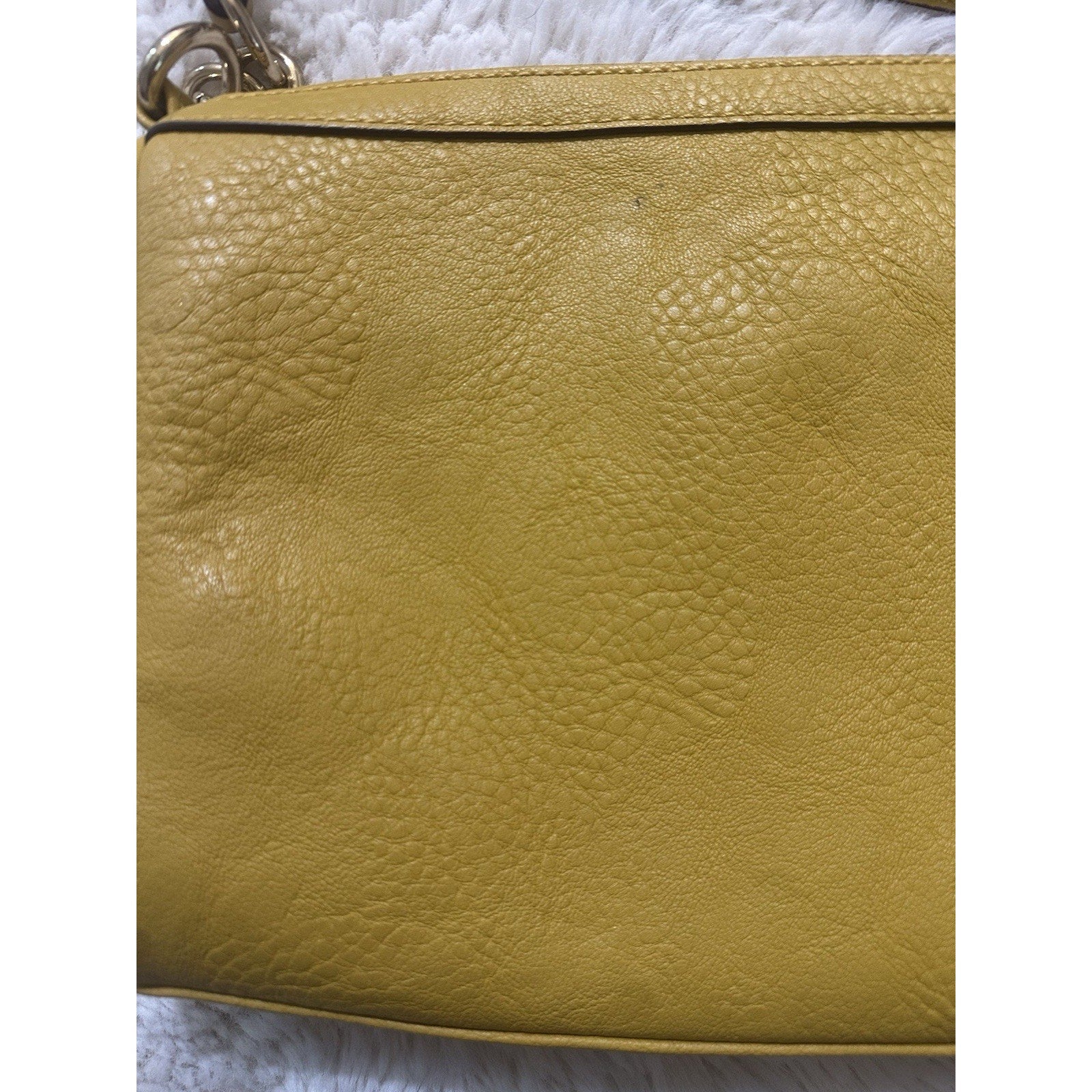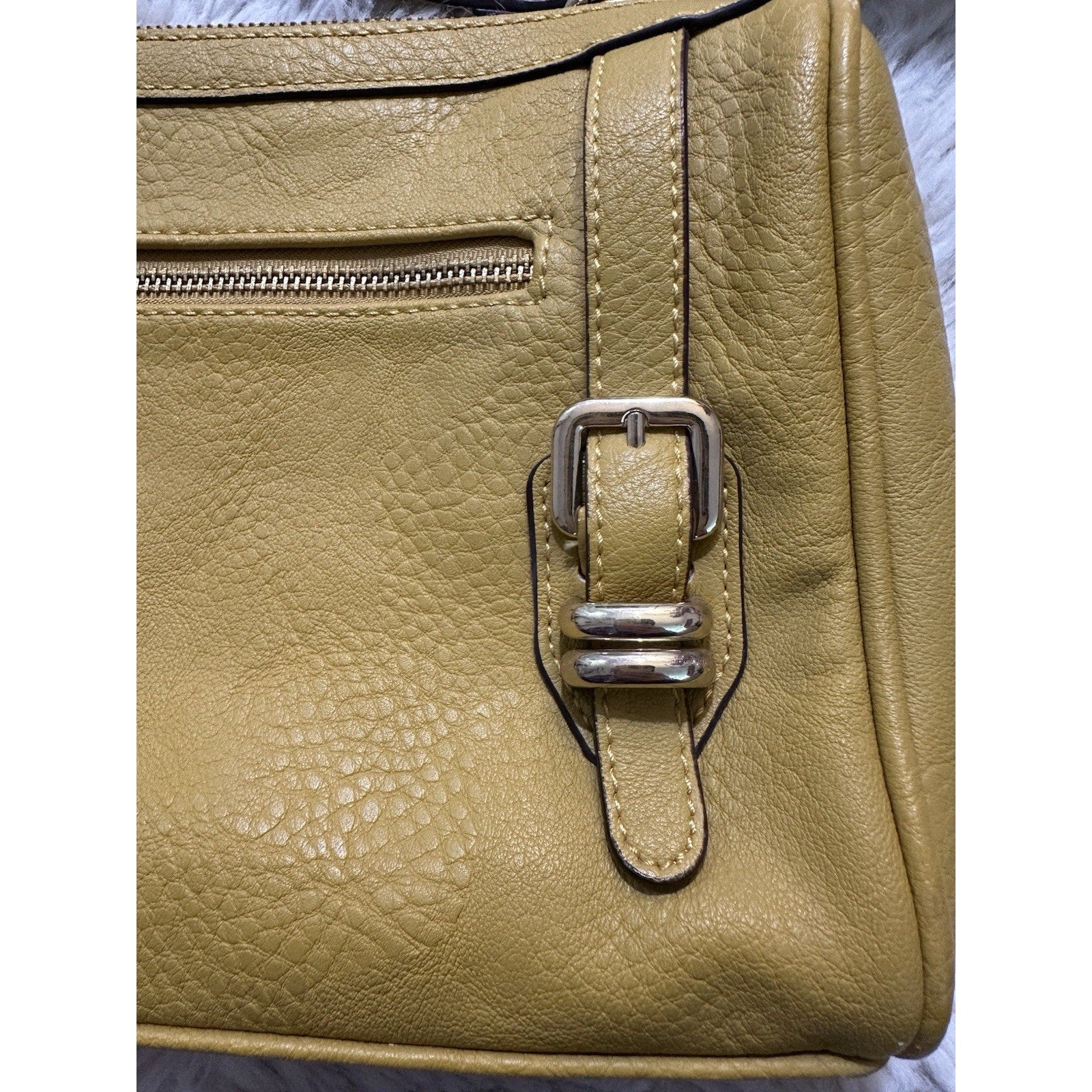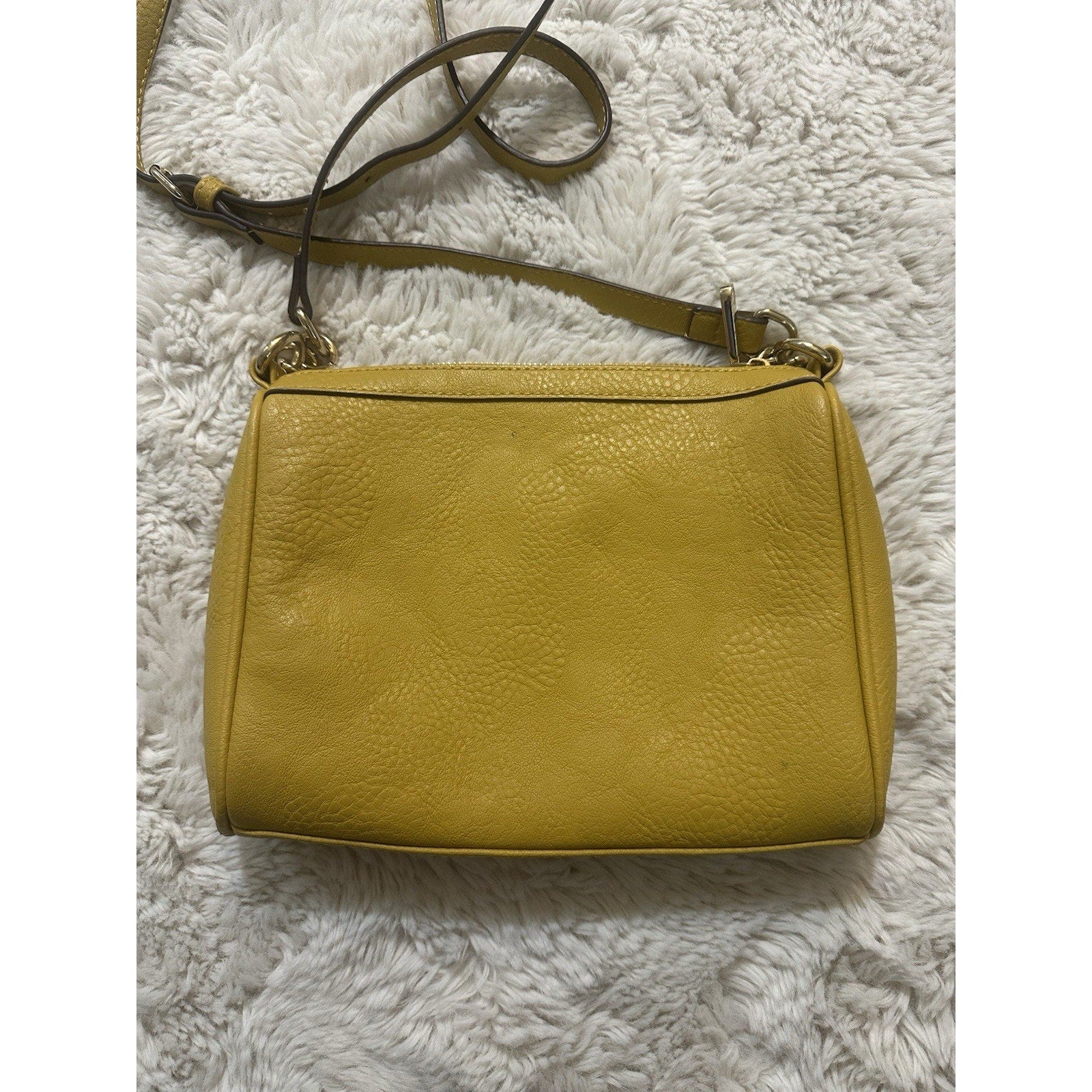 C Crossbody Bag Purse Mustard Yellow Faux Leather 10”x7” Gold Hardware