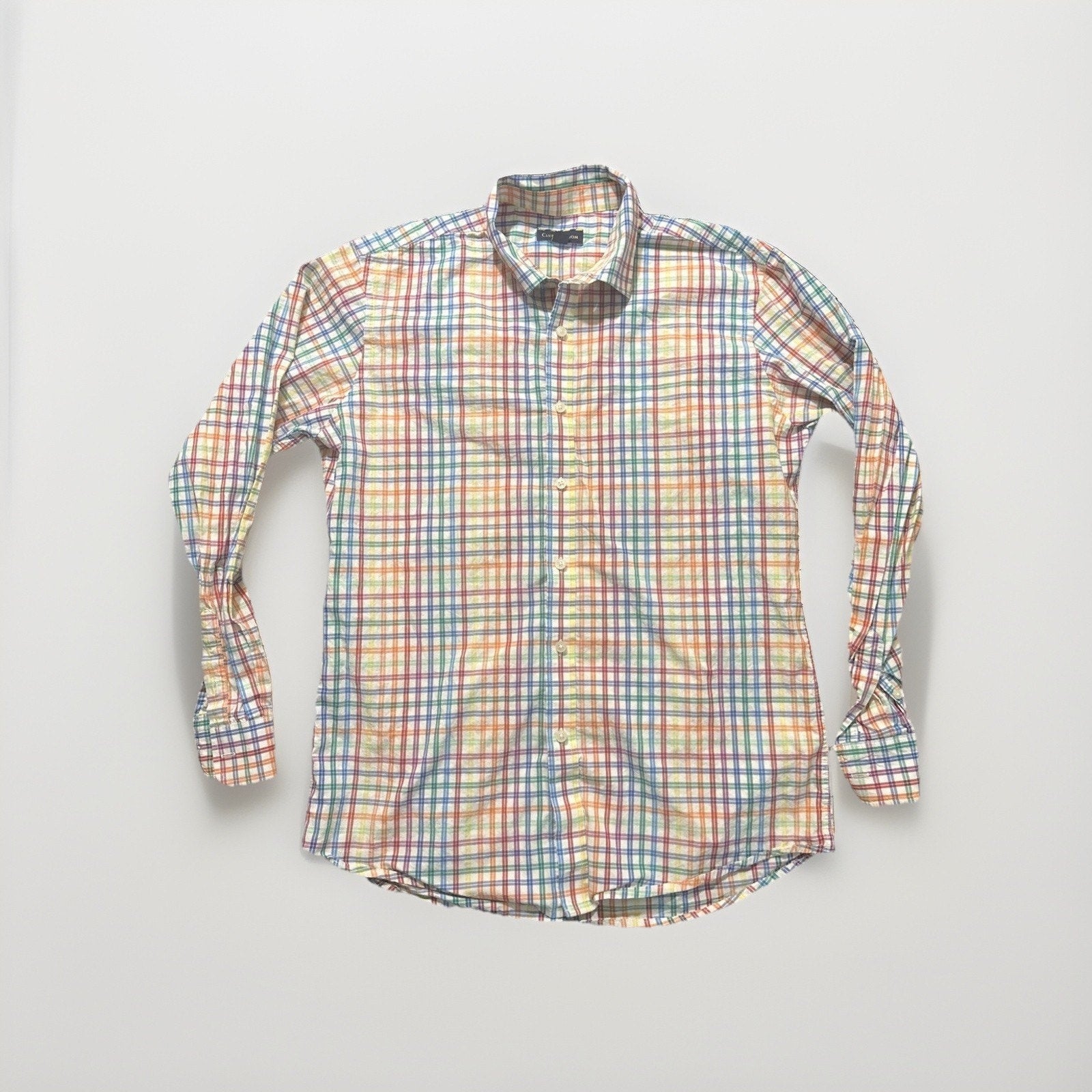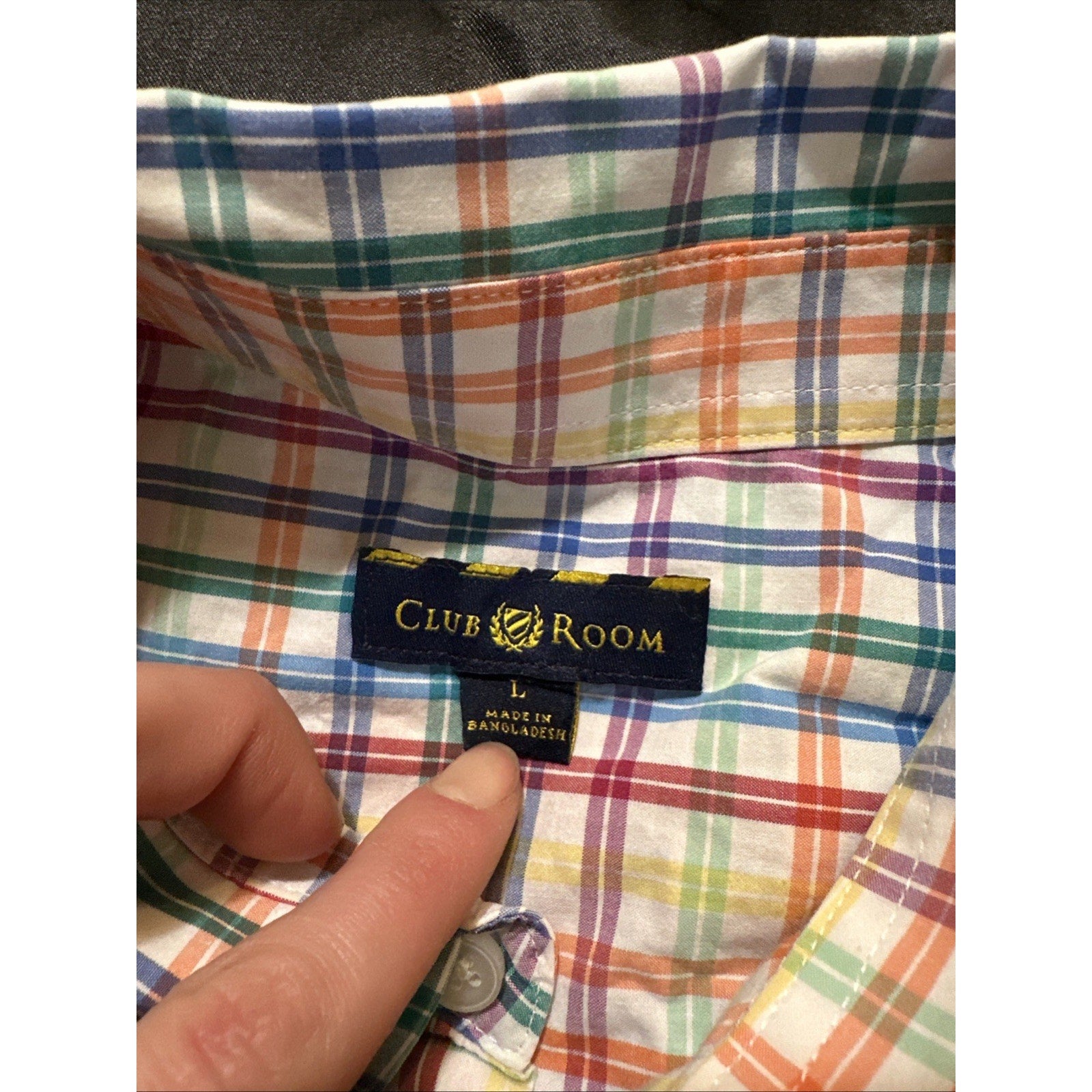 Club Room Size L Rainbow Checkers Long Sleeve Casual Button Down Shirt Mens 1D13