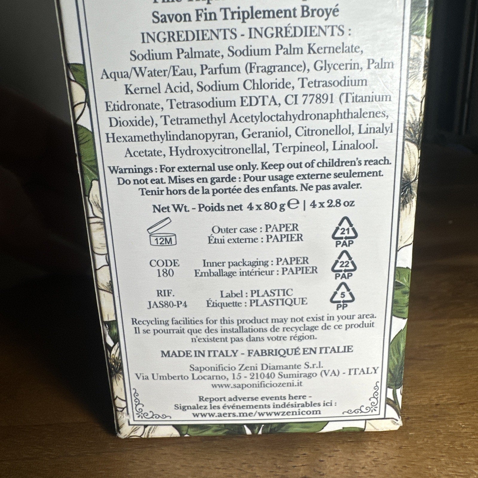 Diamante Jasmine Italian Soap Bars 4-Pack 2.8 oz each NEW IN BOX SEALED