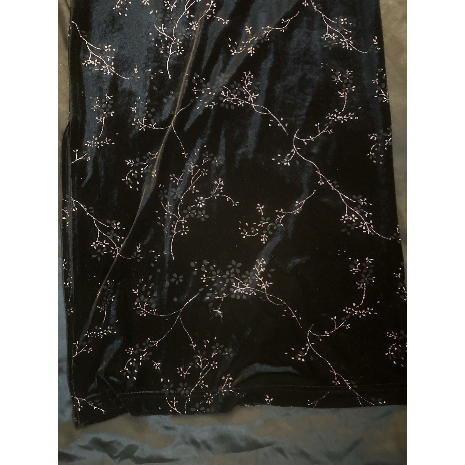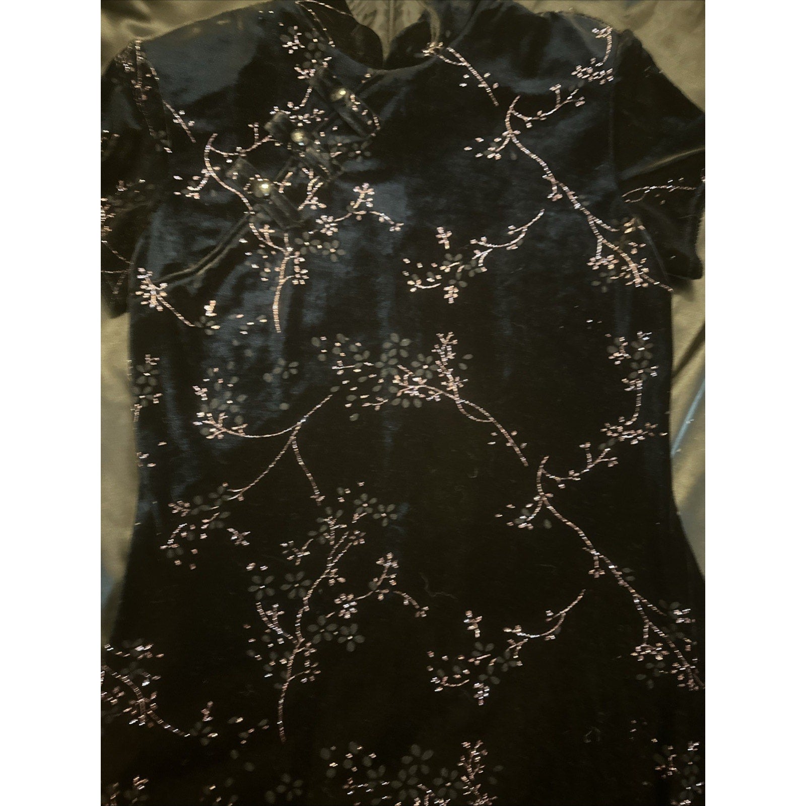 Dress Barn Velour Cherry Blossom Qipao Size 10 Shoulder Pads 90's Vtg Black 1C11