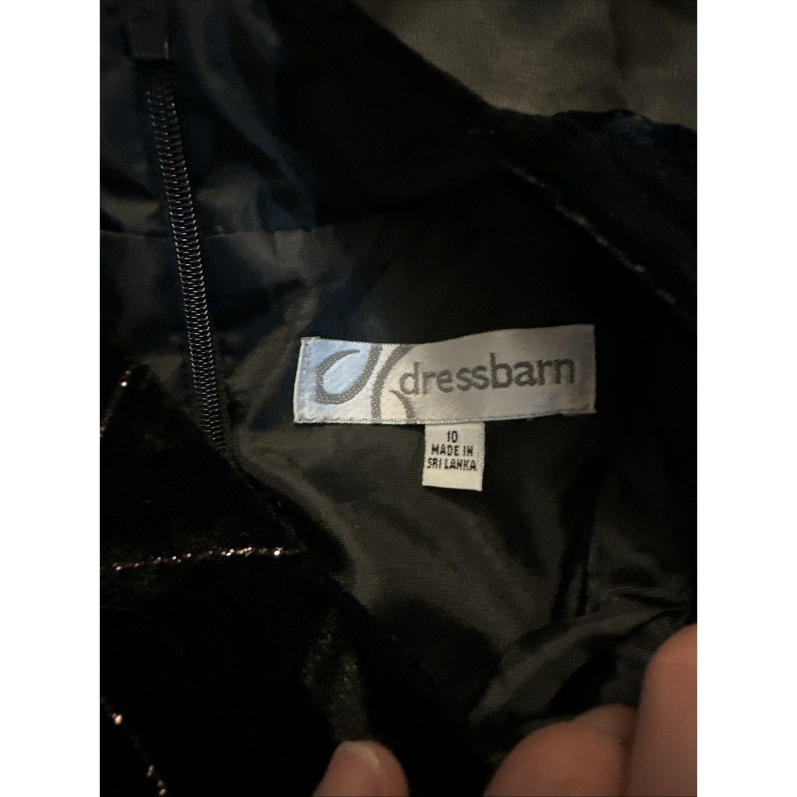 The product is a vintage Dressbarn dress in size 10 with a waist size of 31 inches. It is made of polyester material and features a flattering wiggle/pencil style in a classic black color. Perfect for special occasions or adding a touch of retro charm to any wardrobe, this dress exudes a timeless elegance that is sure to turn heads.