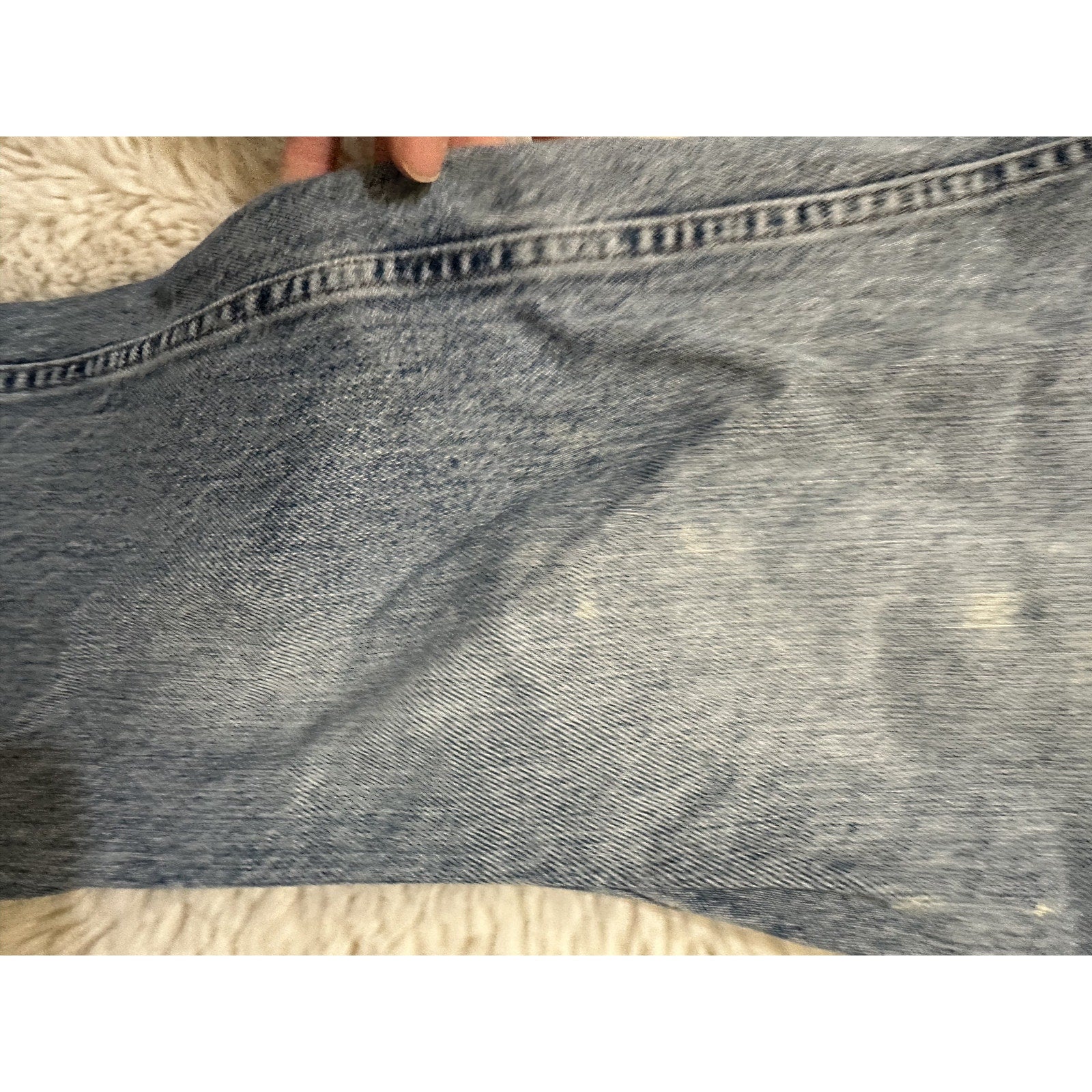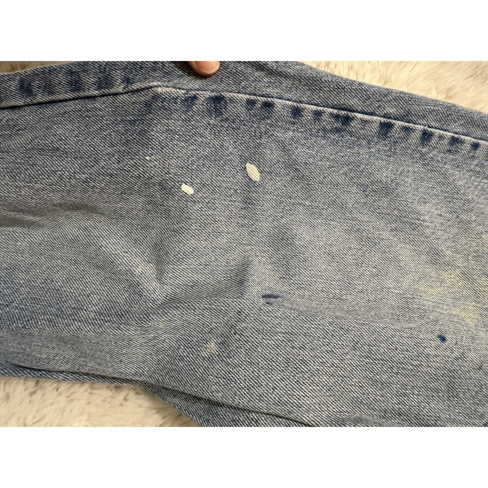 The product is a pair of vintage Eddie Bauer blue denim mom jeans in size 6 tall with a high waist and a light wash. These jeans have a classic 27-inch waist and a 32-inch inseam, making them a flattering and comfortable fit for a tall woman. Made from cotton, these jeans have a timeless appeal and are perfect for adding a touch of retro style to any outfit.