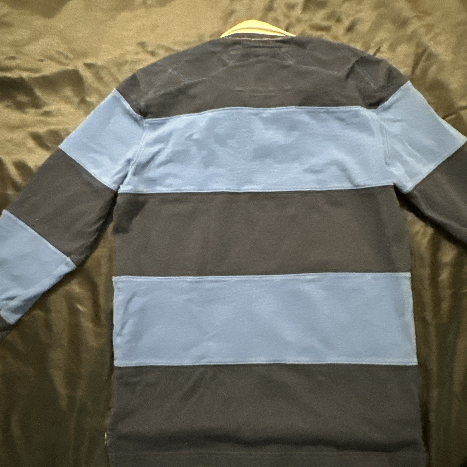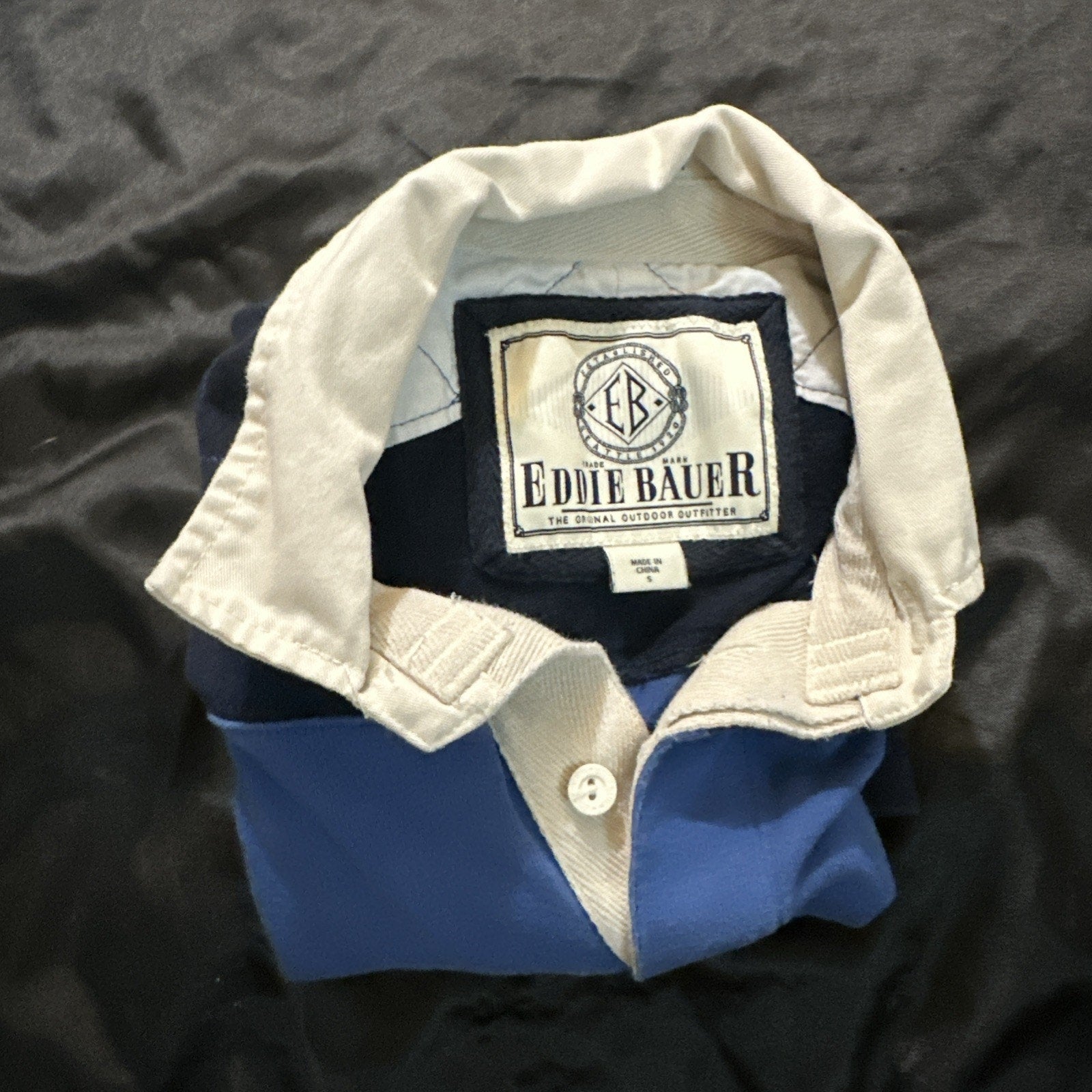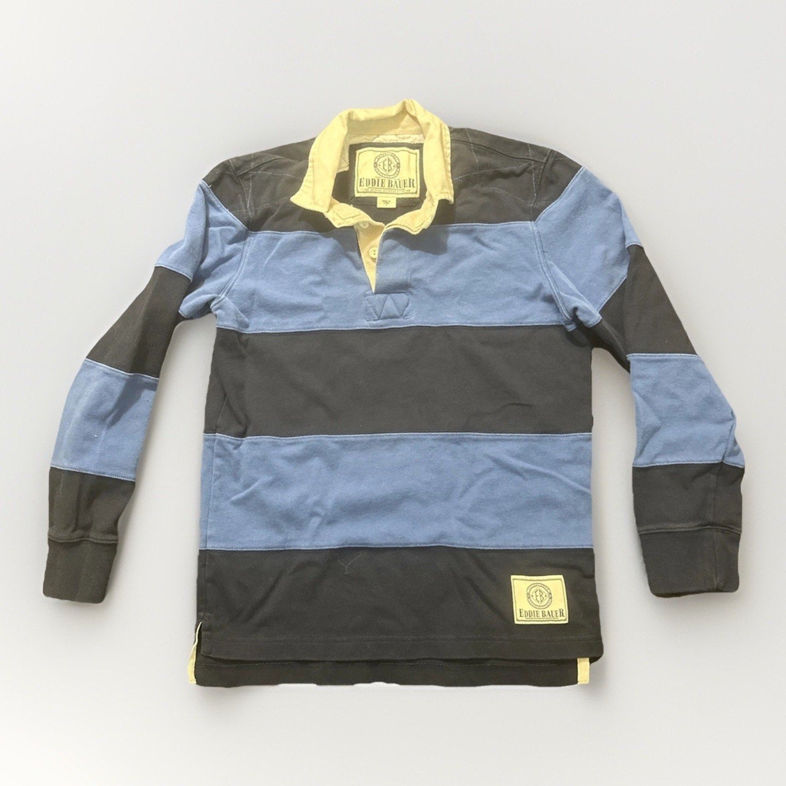 Eddie Bauer Wide Strip Long Sleeve Polo Tee Mens Small Polo Blue Cotton 1A27