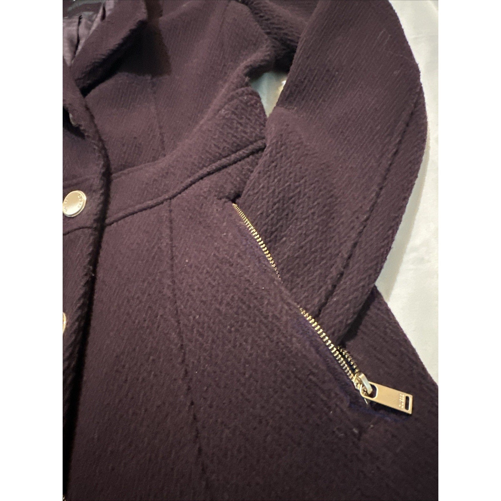 Guess Wool Overcoat Size L Plum Chevron Button Jacket Gold Accents Dark Purple