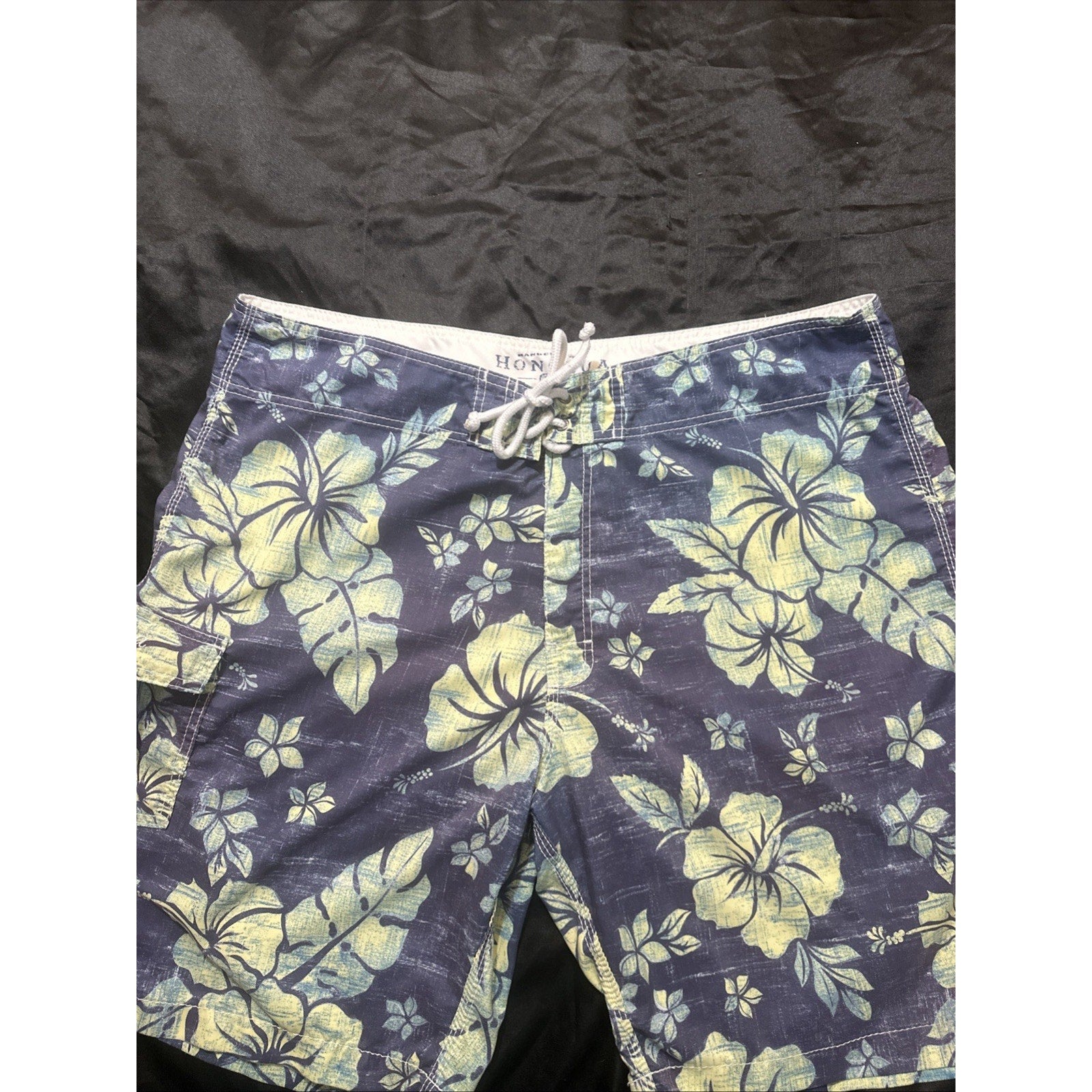 Honolulu Board Shorts Mens Size 42 Hibiscus Yellow/Blue Pockets 1D10