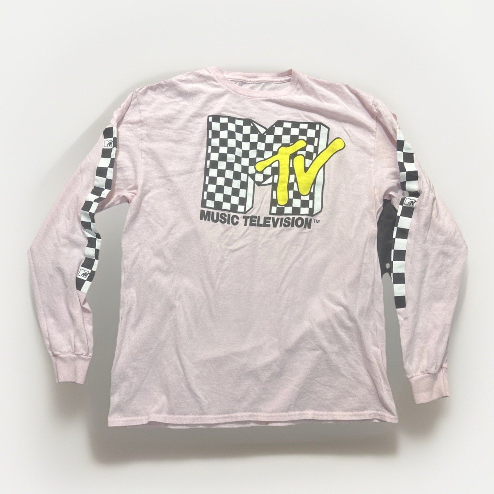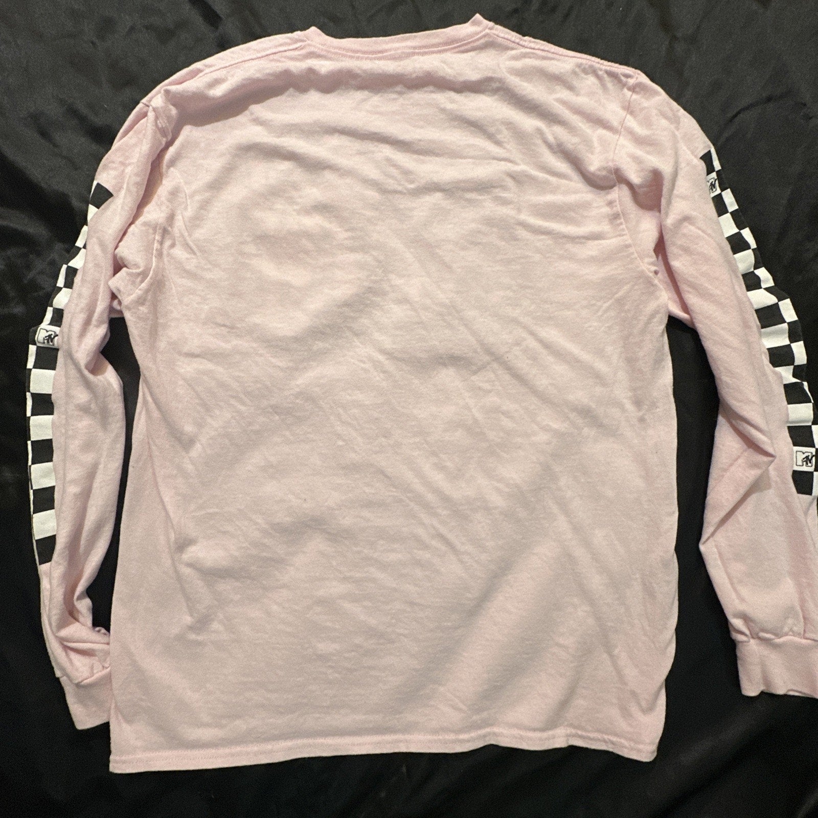MTV Pink Checkers Long Sleeve T Shirt Womens L 21" PTP Music TV 1A17