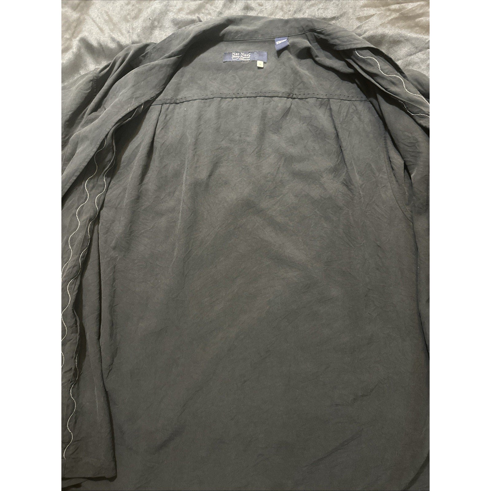 Nat Nast Luxury 100% Silk Button Down Shirt Mens L Onyx Black Bowling 1C19