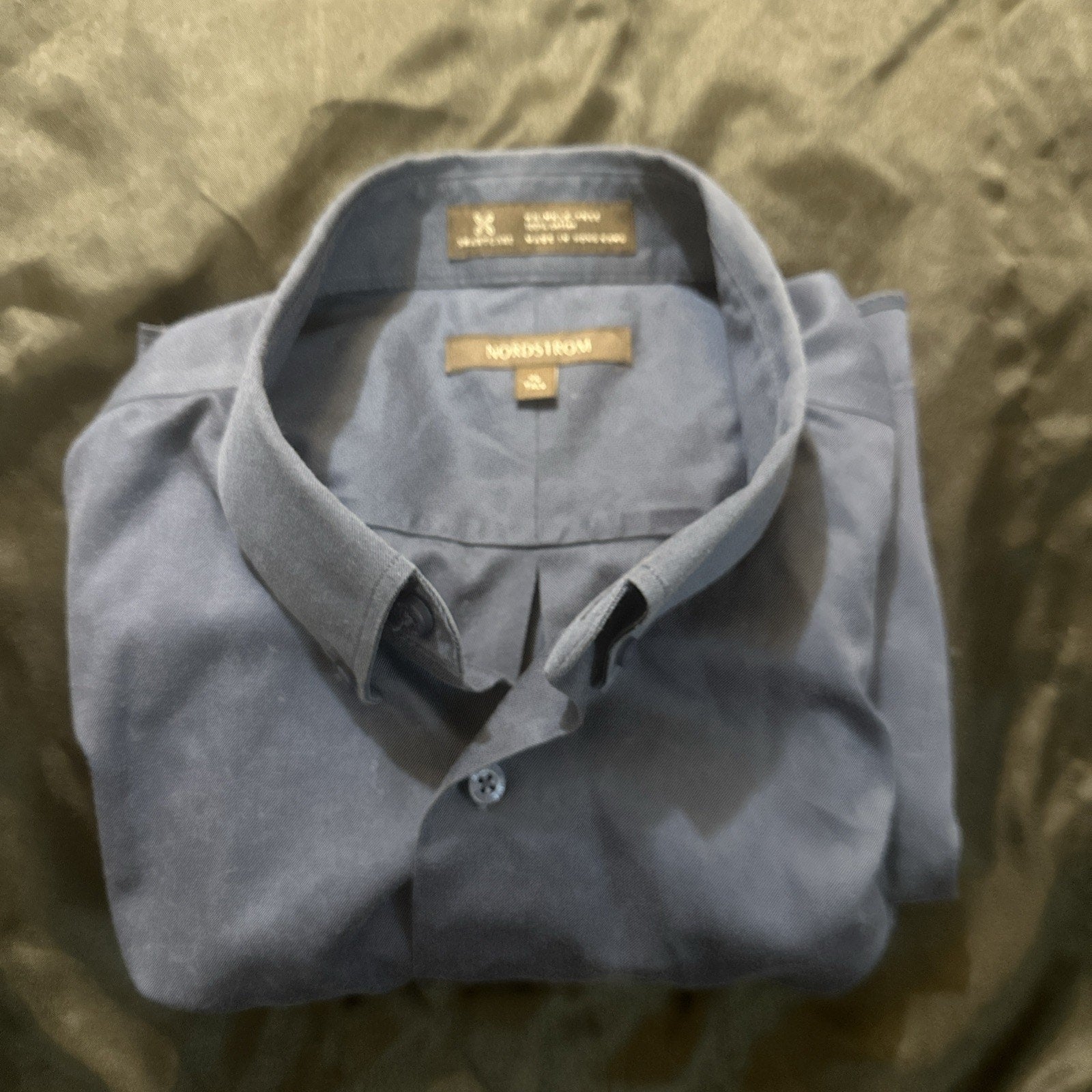 Nordstrom Smart Care Mens XL Tall Button Down Long Sleeve Dress Shirt Blue 1A18