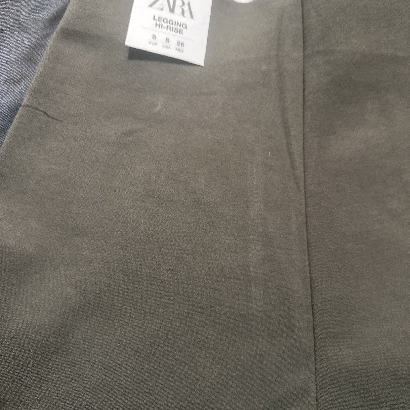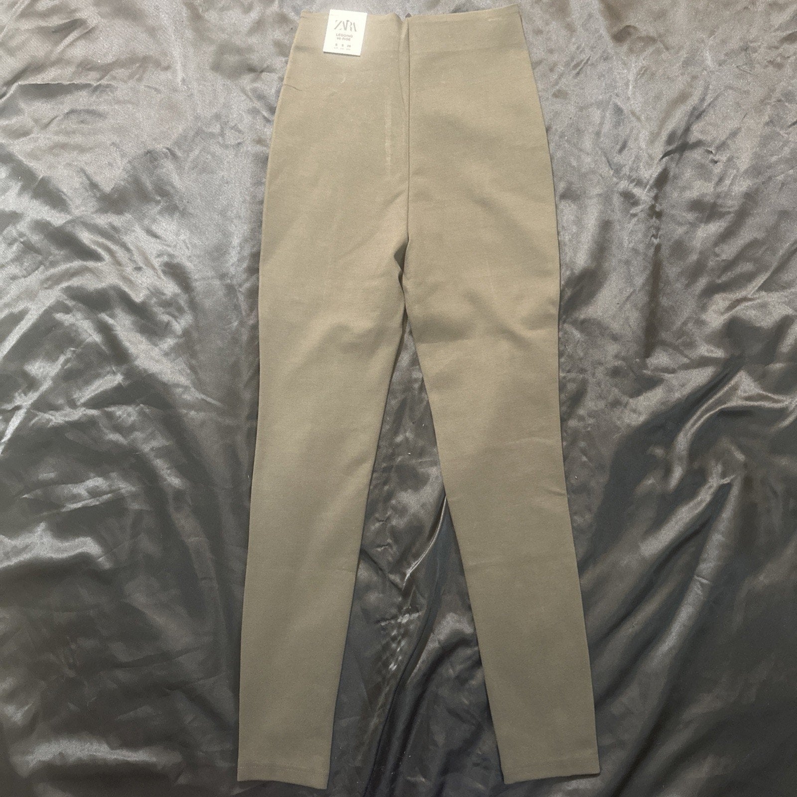 The product is a pair of women's leggings from Zara in a size small and a vibrant green color. These ankle-length leggings feature a high rise waist, making them both stylish and comfortable for everyday wear. With a regular fit and flattering silhouette, these leggings are perfect for pairing with a variety of outfits and occasions.