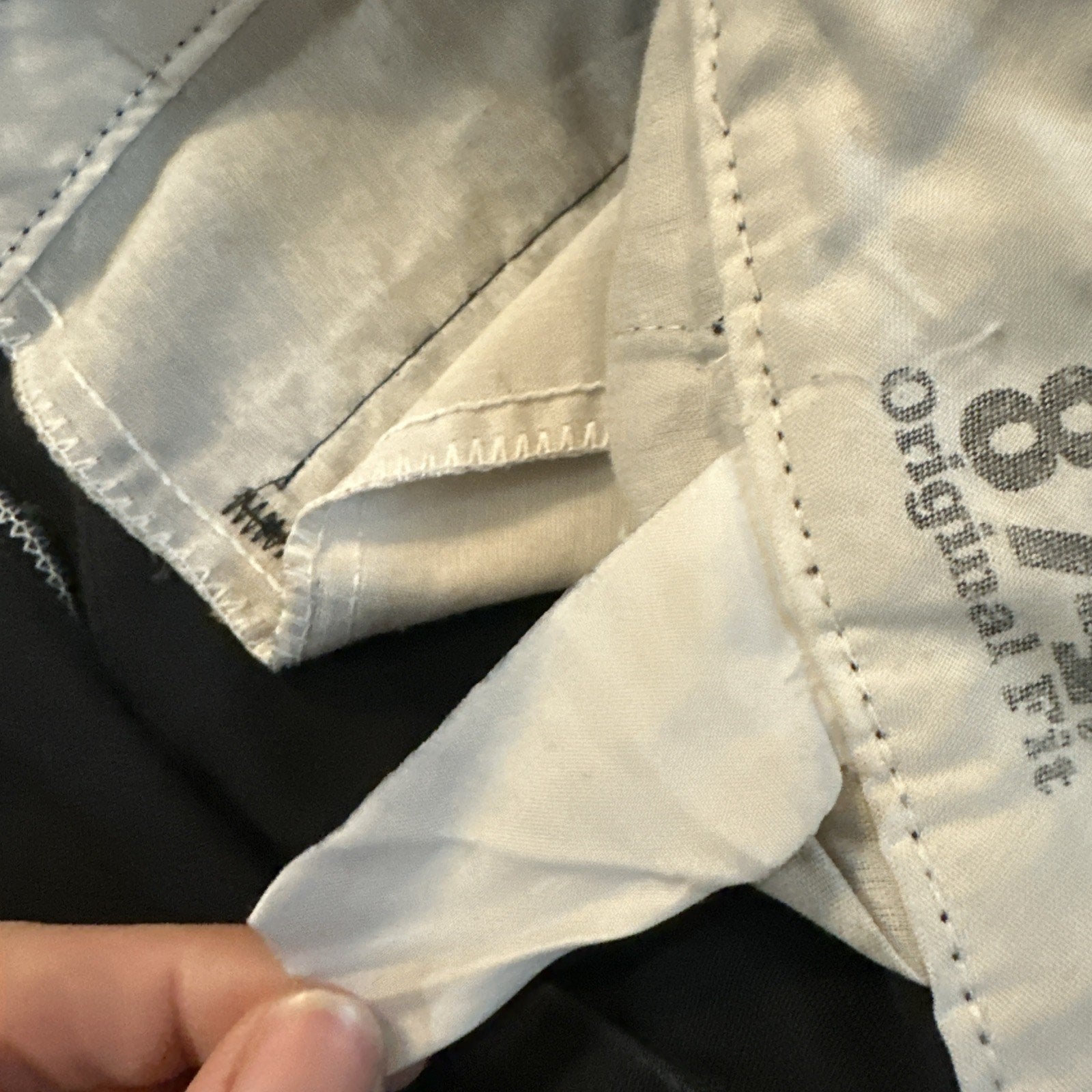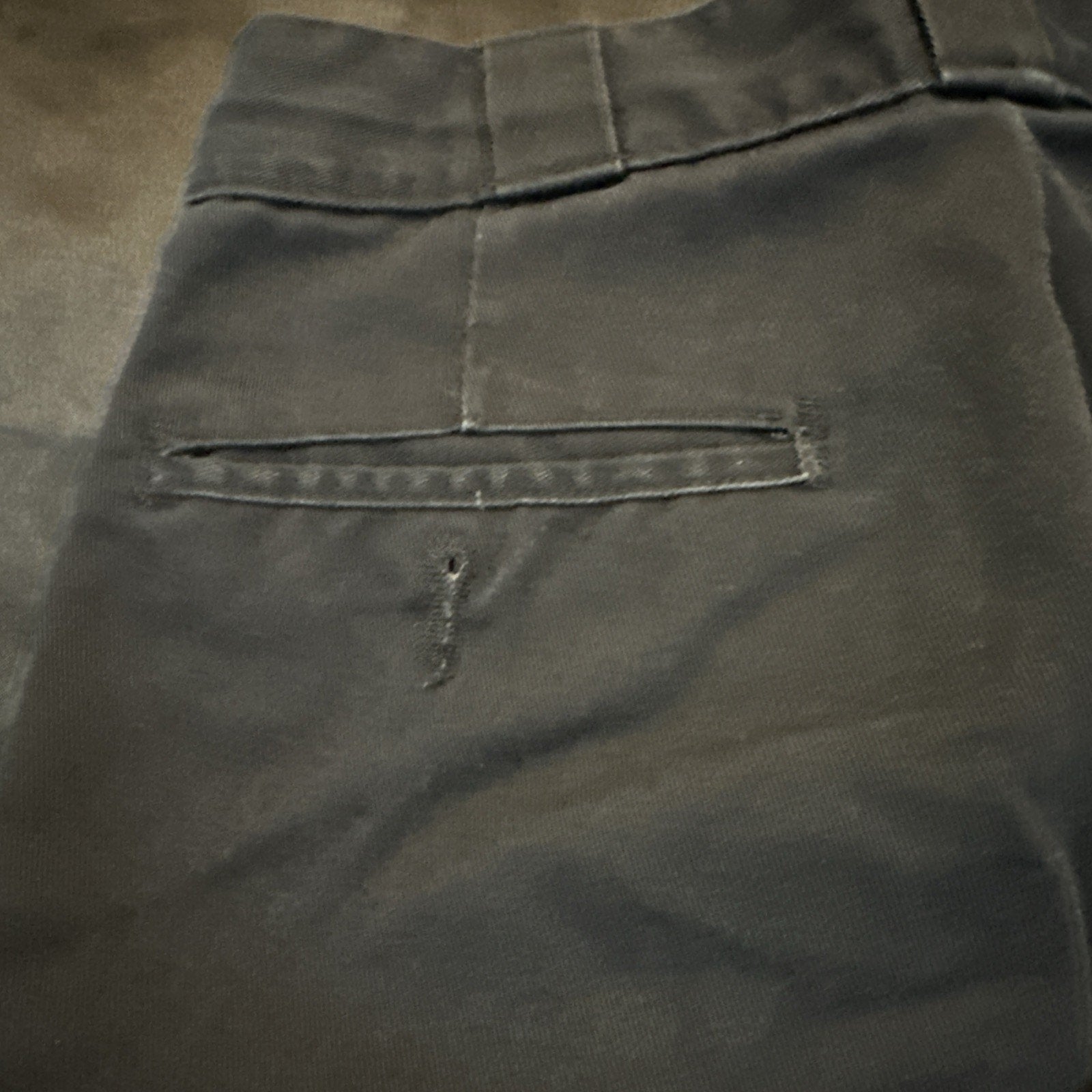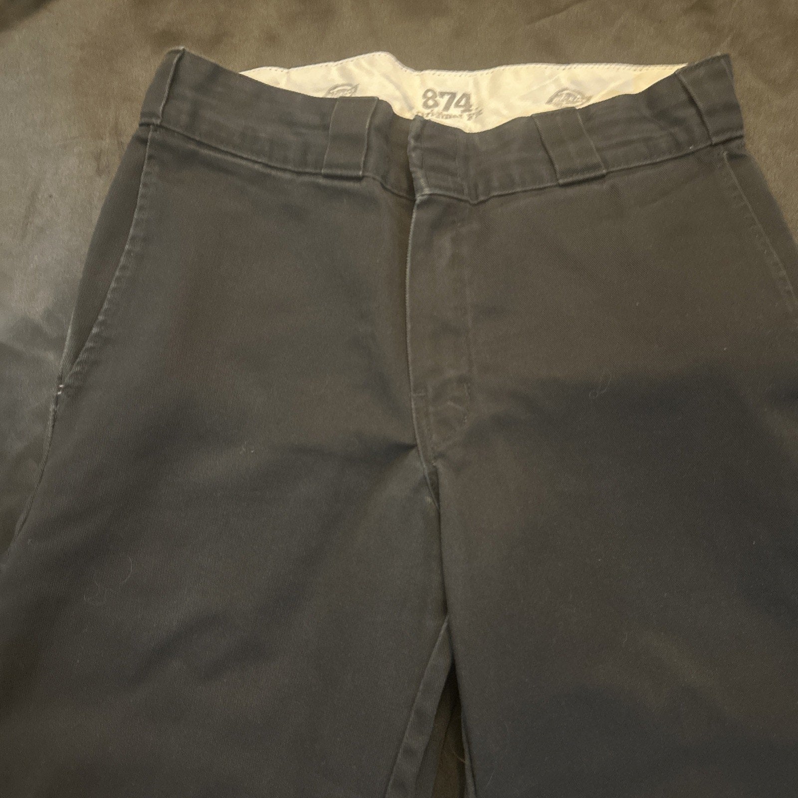 Tag is super worn. These are original fit manufactured back in the 1990's. Are we old yet? The product is a pair of women's vintage black pants by Dickies, made of cotton material with a regular size and 28-inch inseam. The waist size is also 28 inches. This retro item combines quality construction from the renowned brand with a timeless black color, making it a versatile addition to any wardrobe for those who appreciate vintage fashion.