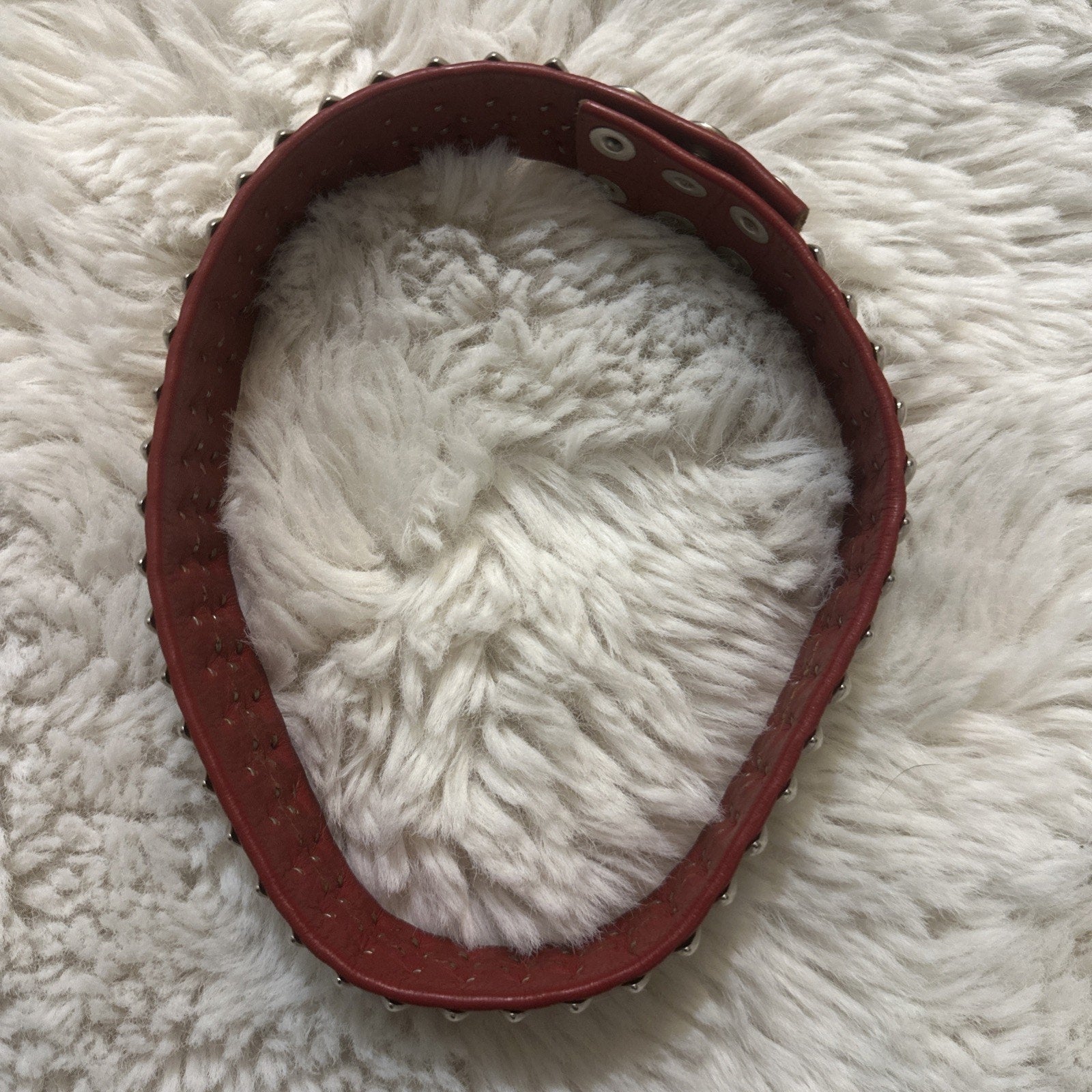 This is very very cool. It’s slightly too big for me but if it did fit I would keep it!!! The Red Leather Collar Necklace is a stylish and adjustable accessory perfect for those who love the punk rock aesthetic. Made from high-quality leather with a 1” width, this necklace features a snap closure for easy wear. The vibrant red color adds a bold statement to any outfit, making it a versatile piece for both casual and edgy looks. Its vintage style adds a unique touch to your ensemble, making it a must-have for any fashion-forward individual looking to express their bold personality.