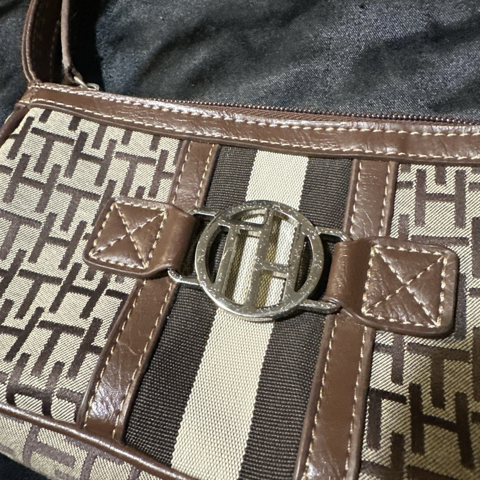 Tommy Hilfiger Women’s Purse Handbag Small Y2K Brown 8”x3” Leather Strap