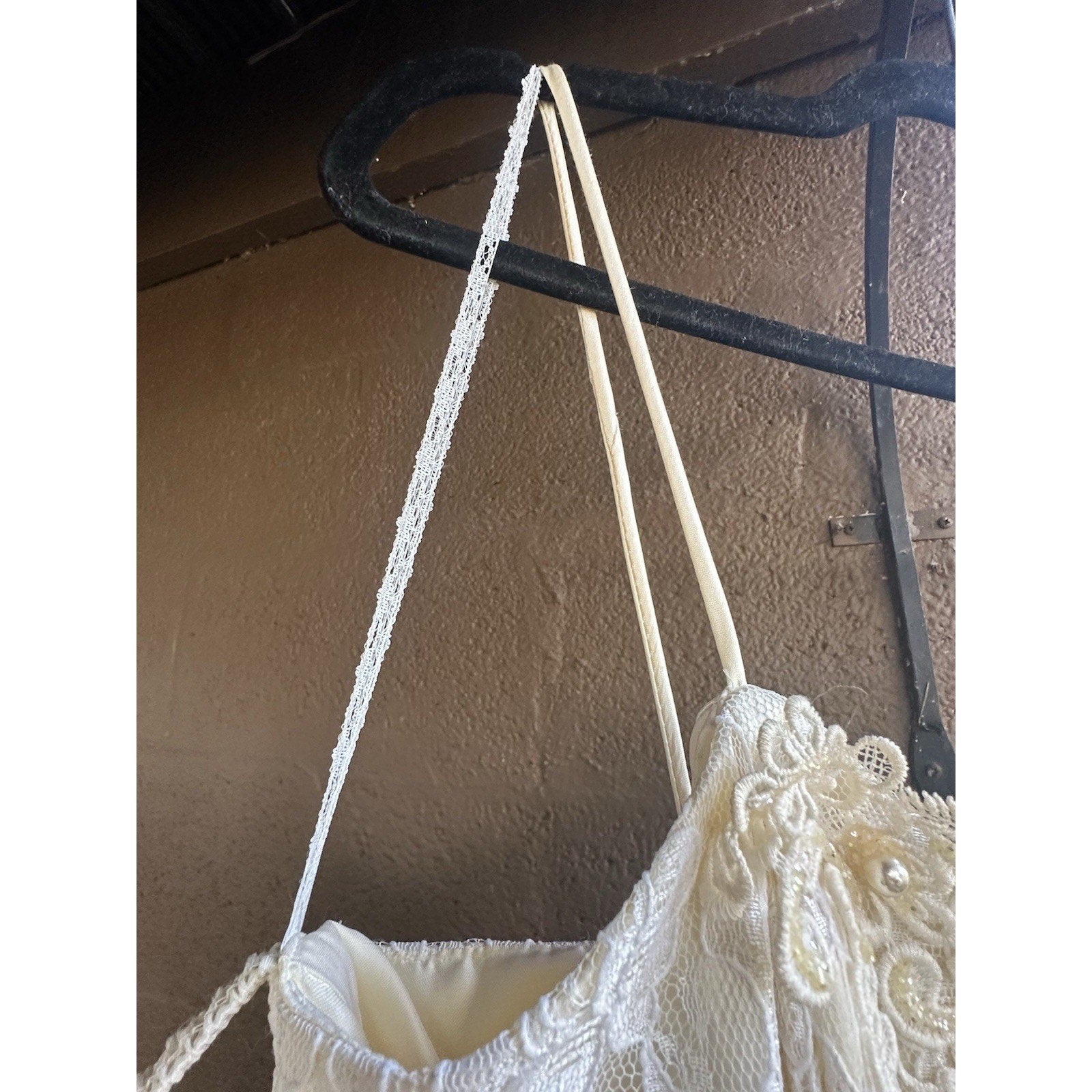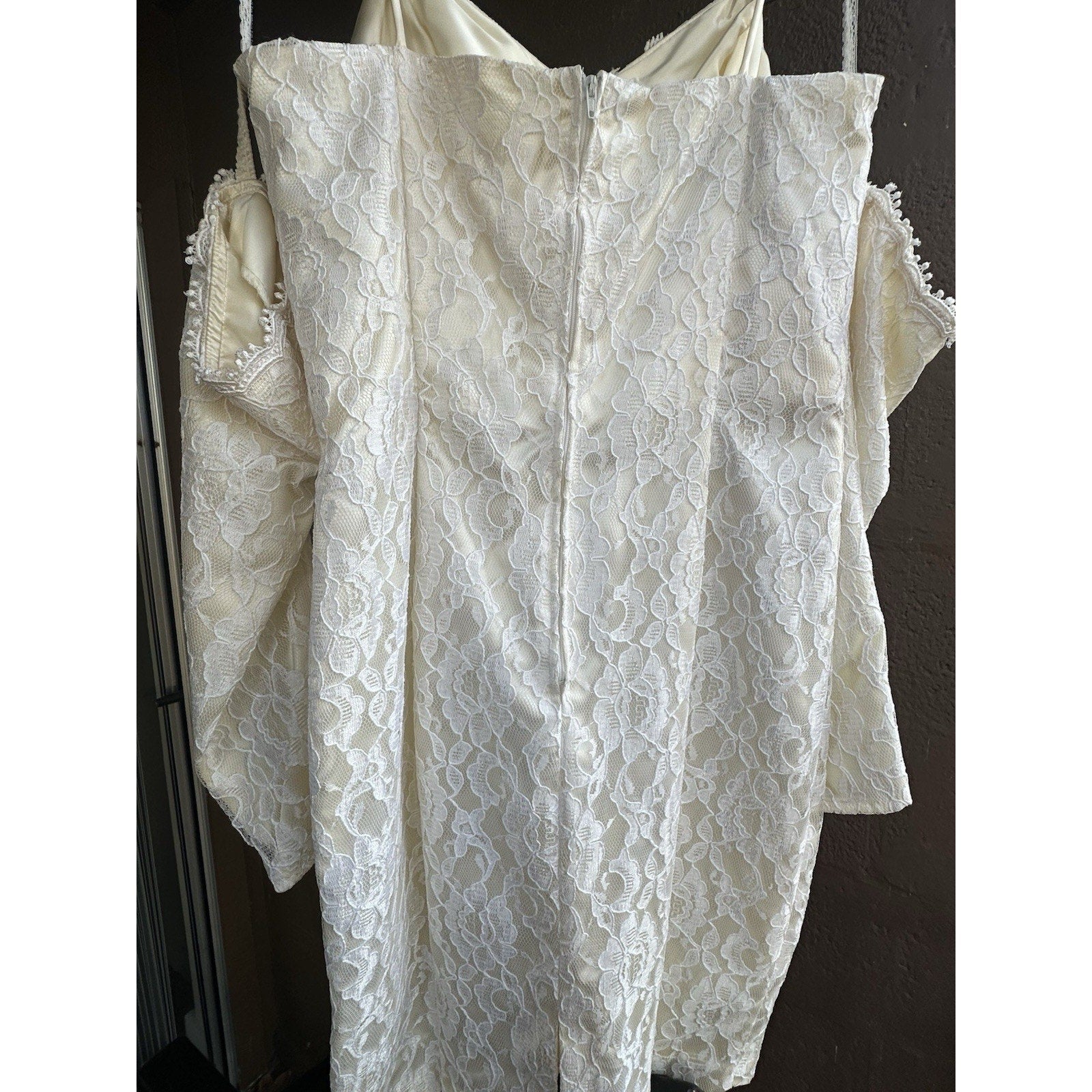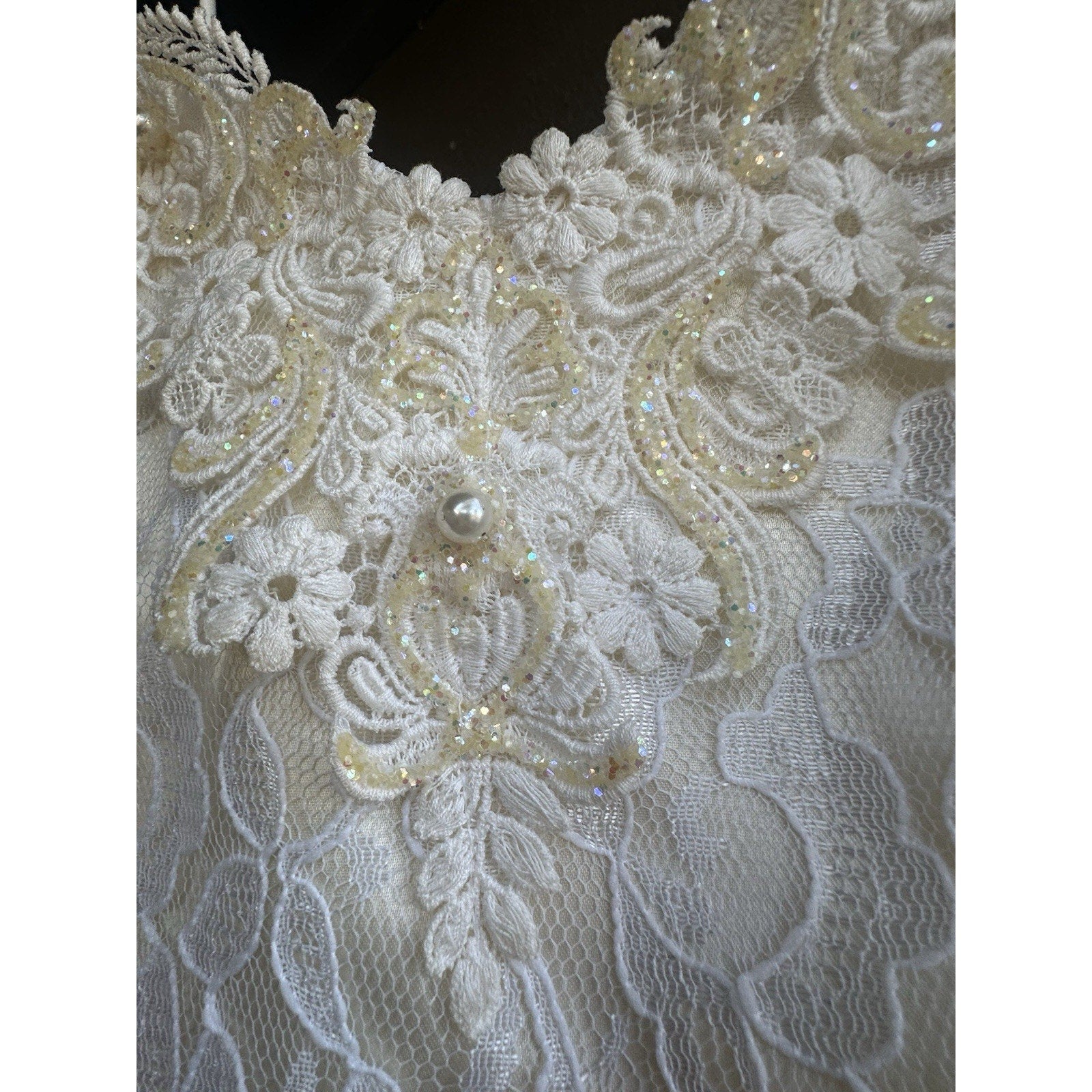 True Vtg Steppin Out Dress White Lace Glitter Detached Sleeves Size 11 USA Made