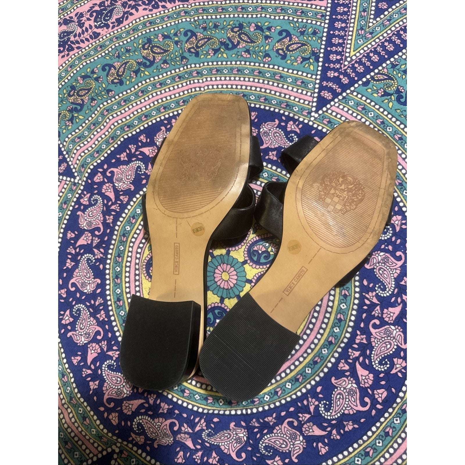 Vince Camuto Strappy Leather Slip on Sandals Gold Accents Heavy Heel Size 8.5