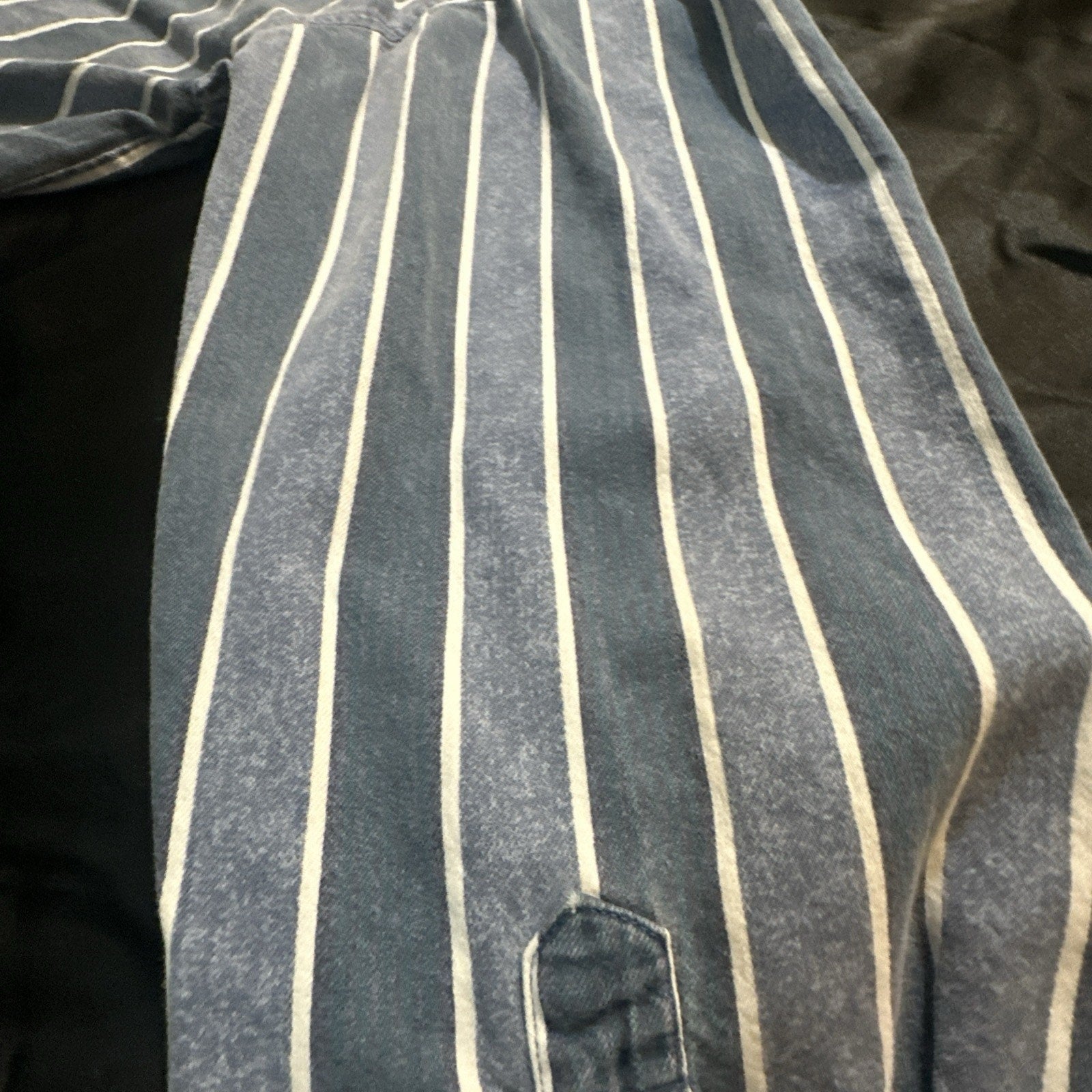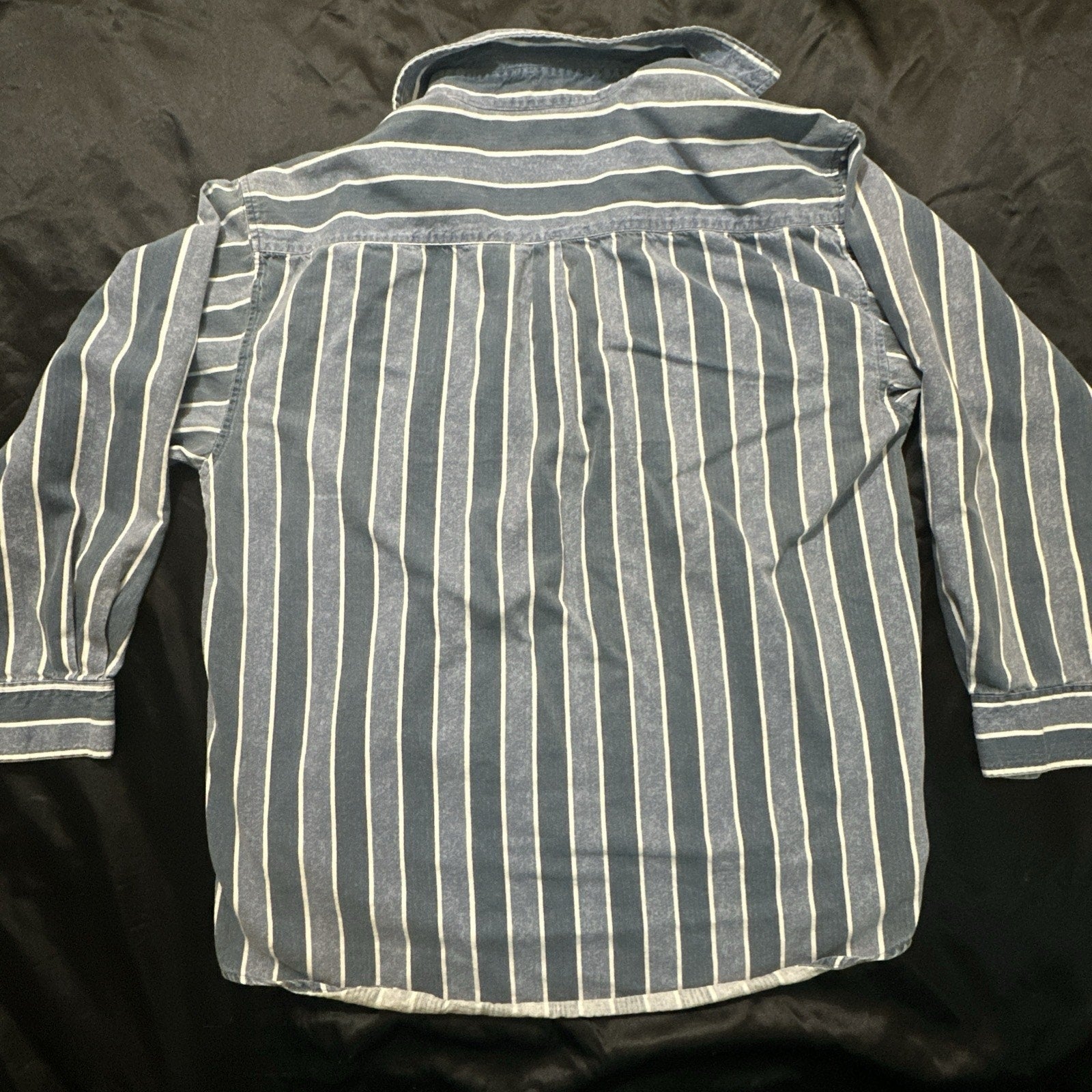 Vtg Heavy Cotton Button Down Shirt Blue Stripes L/XL 25" PTP High Quality 1A01
