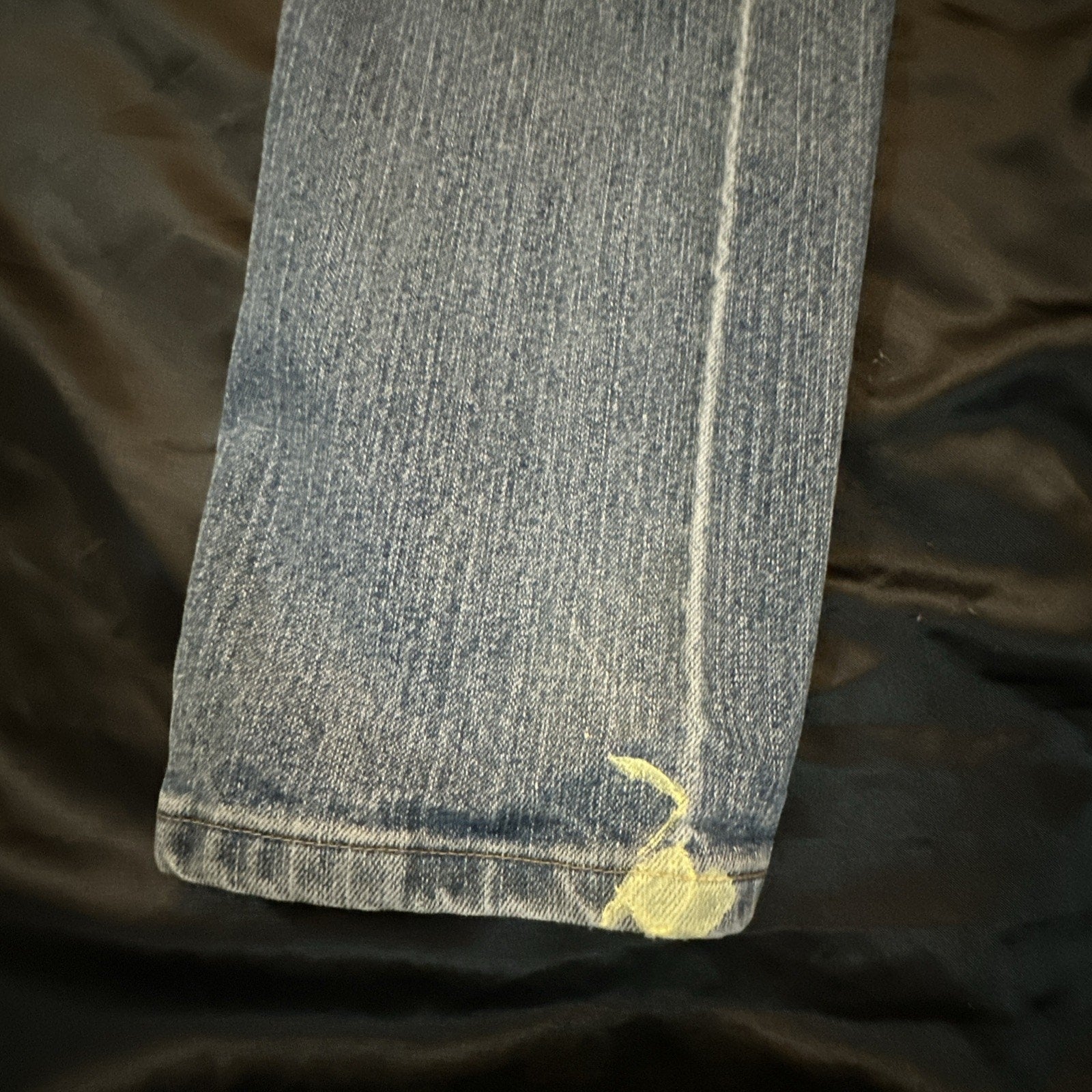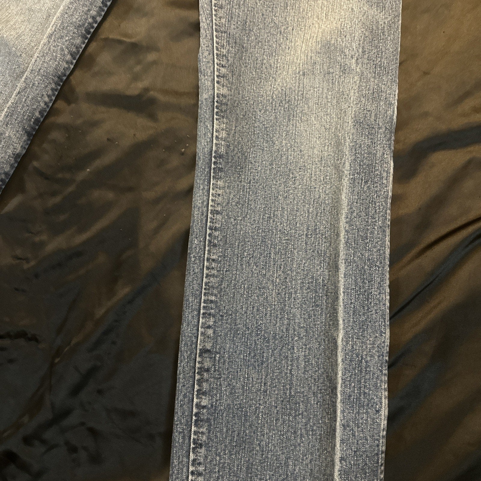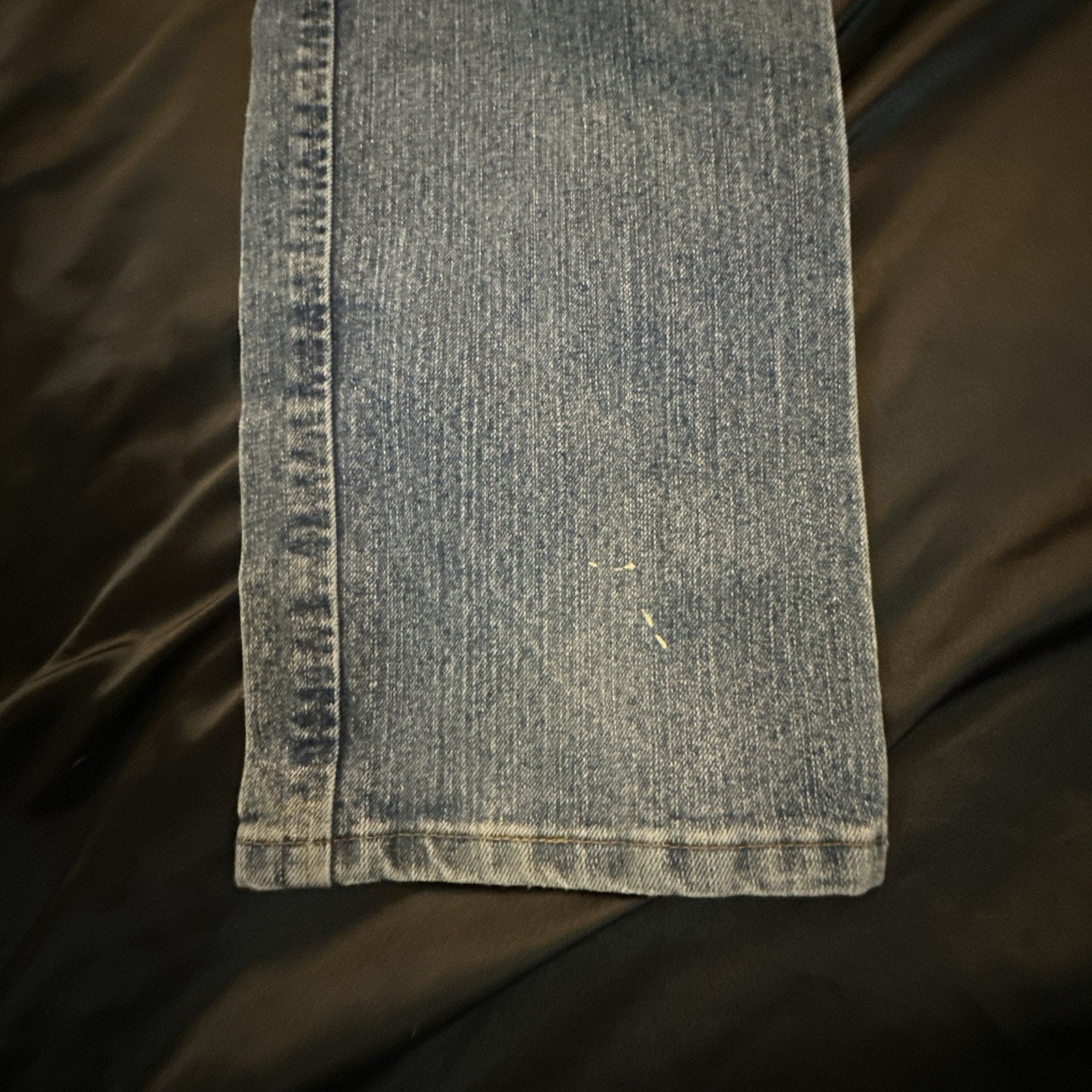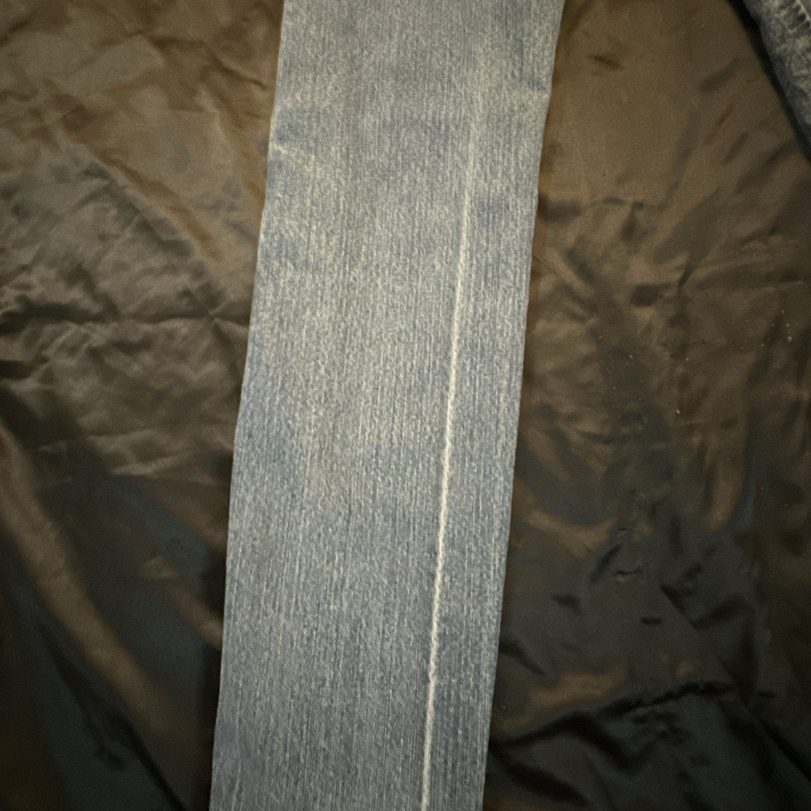 The product is a pair of men's vintage Wrangler jeans in size 32 with a regular fit and a 38-inch inseam. Made of cotton in a classic blue color, these jeans are a timeless piece of clothing that exudes a rugged and stylish look. The Wrangler brand is known for its durability and quality, making these jeans a reliable choice for everyday wear or special occasions.