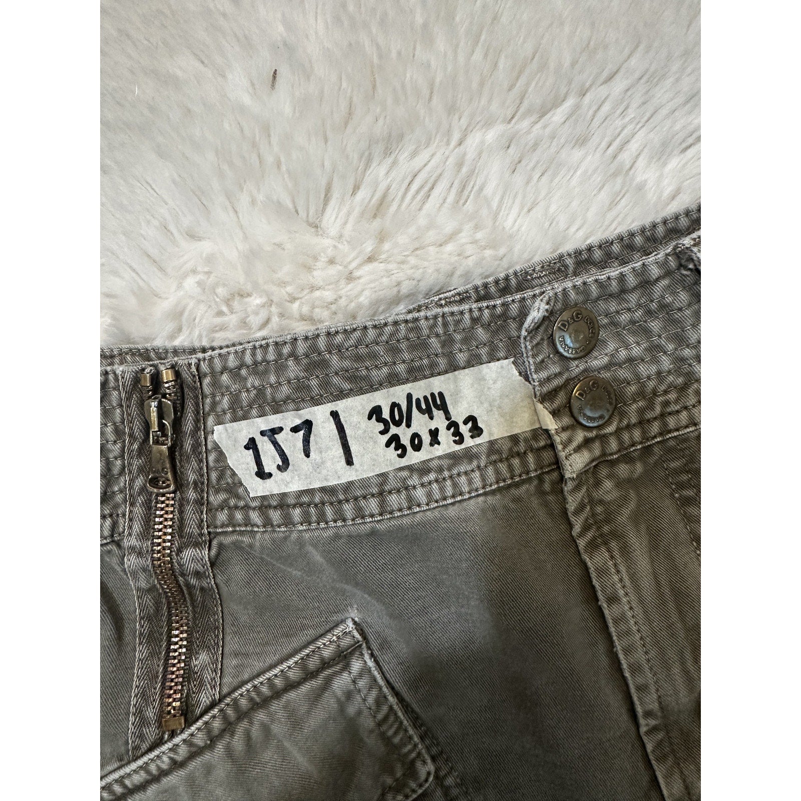 Found this gem the other day. Maybe you will like them too? The Dolce & Gabbana Olive Green Pants in size 30x33 are a stylish and versatile addition to any woman's wardrobe. Made from 100% cotton denim, these straight-leg cargo pants feature a zipper accent and are designed in a military-inspired khaki color. Perfect for everyday wear or a casual night out, these pants combine fashion and function seamlessly, reflecting the brand's iconic style.